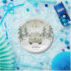 Placa de papel com tema de chá de inverno única, com pinheiros elegantes, paisagens de neve e carros vintage de chic