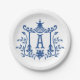 Estas placas chic pagoda monogramas são perfeitas para se divertir e fazer um excelente presente de hospedeira. O design de pagode e o monograma estão em azul marinho em branco.