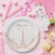 Prato De Papel Chic Pêssego Rosa Foto Torre Eiffel Chá de Noiva