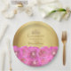 Prato De Papel Chic Pink Rose Floral Gold Crown Quinceañera