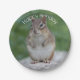 Um chipmunk que senta-se verticalmente em uma parede de pedra.