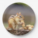 Um pedaço comendo um amendoim enquanto estava de pé sobre sua pilha de amendoins. Este é um dos esquilos que vive em um acampamento em Ticonderroga, NY. Esta imagem foi tirada por Debbie Quick of Debs Creative Images. Para ver mais fotografias de Debbie, visite o site:www.debscreativeimages.com