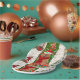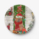 Cachorro Chow Sentado fora de casa decorada com coroa de Natal, árvore de Natal é uma ideia perfeita de presente de Natal para amantes de cachorros.