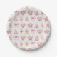 Adorable Christmas paper plates featuring a seamless watercolor pattern of gingerbread cookies, pink bows, and festive holiday shapes. Perfect for a sweet baby shower or cozy winter celebration.