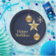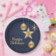 Christmas Party Golden Ornament Navy Blue Elegant Paper Plates. Unique, beautiful, stylish design. Easy to be personalized. Font style, size and colors can be changed. Matching items are available.