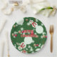 Christmas Snowmen paper plates. Festive snowman pattern with green background. Snowflakes and ornaments add to the festive mood with Merry Christmas that can be personalized or changed.