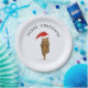 These holiday paper plates depict a tabby cat wearing a christmas santa hat and performing a yoga tree pose. The greeting is simply "MERRY CHRISTMAS" or you can edit this to suit.