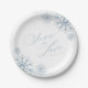 Celebre o amor com nossos pratos de papel Chuva de Amor Chá de Noiva, apresentando flocos de neve elegantes em aquarela em azul suave empoeirado. A escrita moderna em caligrafia e os acentos de brilho prateado adicionam um toque chique e festivo, perfeito para um chá de noiva de inverno mágico.