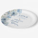 PRATO DE PAPEL CHUVA DE AMOR EM FLORES AZUIS NO CASAMENTO
