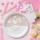Com uma adorável cegonha carregando uma entrega muito especial, em um fundo de brilho em rose gold e rosa bege, este prato de papel para chuva de bebê, sprinkle ou chá de casal é perfeito para todos os pequenos que estão a caminho. Desenhado por Thisisnotme©