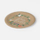 Com uma grinalda floral moderna de flores da primavera em um fundo rústico kraft boho neste lindo chá de bebê neutro, sprinkle ou prato de papel para chá de casal.