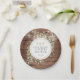 Com belas luzes de corda e delicadas folhas de folhagem em aquarela sobre um fundo de madeira rústica, estes pratos de papel para chuva de casal botânicos elegantes podem ser personalizados com as iniciais do seu monograma e detalhes especiais da chuva de casal. Criado por Thisisnotme