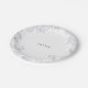 Prato de papel para chuveiro azul marinho e branco botânico. Neutro. Fundo branco.