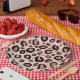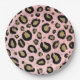 Prato De Papel Chuva de Glitter Rosa Dourado e Oncinha Preta Chá