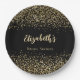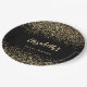 Pratos de papel para Chuva de Noiva com sobreposição de brilho estampa leopardo dourado preto. Personalize-os com duas linhas de texto.