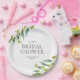 Placa de papel moderna e fresca de folhas de prado botânico para chuva de noiva, apresentando folhagem verde delicada em aquarela, enquadrando os detalhes da sua chuva de noiva em letras elegantes. Desenhado por Thisisnotme©