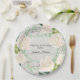 Artigos de festa de papel para chuva de noiva para combinar com o convite. Fundo de madeira rústica em um tom cinza suave com ripas brancas destaca as flores e folhas pintadas à mão em aquarela. Altere a ocasião ou nomes facilmente usando o campo de modelo fornecido. O design floral pintado à mão em aquarela tem rosas cor de marfim e pêssego com folhagem agrupada para um design de jardim natural ao ar livre. Direitos autorais, todos os direitos reservados.