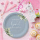 Este prato de papel para chuva de noiva com folhas botânicas elegantes pode ser personalizado com suas informações em tipografia chic. Criado por Thisisnotme©