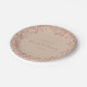 Pratos de papel rosa bege continuam o tema romântico neste conjunto de chá de panela. A tipografia é elegante, mas também divertida e moderna. A paleta de cores é suave e boêmia em toda a festa. O rosa claro bege funciona perfeitamente sobre os pratos rosa escuro maiores.
