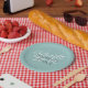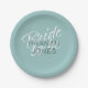 Elementos: fonte moderna sans serif com elementos de texto divertidos Cores: turquesa, verde menta, branco, preto. Temas: moderno, contemporâneo, romântico, caprichoso, meados do século, claro e brilhante, vintage, elegante. Coleção: Coleção de Chuva de Noiva Moderna e Elegante Turquesa Verde Mentol. Tipo de Produto: Pratos