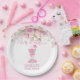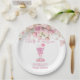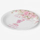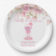Celebre sua festa de Chá de Noiva com estilo com nosso prato de papel Pétalas Florais Rosa e Prosecco. O modelo apresenta um lindo layout com charmoso design de aquarela floral rosa no fundo e um copo de Prosecco rosa adornado com flores rosa simbolizando celebração, charme e elegância.