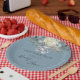 O azul empoeirado é a cor de fundo para este brilho Disco floral elegante design personalizado para Chá de Noiva.