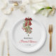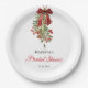 Adicione um toque de alegria natalina ao seu chá de panela com esses pratos de papel Visgo e Laço Vermelho. Com folhagens exuberantes, frutas delicadas e uma fita festiva, eles são o acessório perfeito para uma celebração de Natal ou inverno aconchegante.
