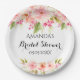 Prato De Papel Chuveiro de noiva flores rosa bege branco nome
