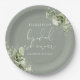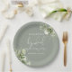 Este prato de papel de chuveiro de noiva com folhas de verde botânico elegante pode ser personalizado com suas informações em tipografia chic. Projetado por Thisisnotme©