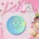 Prato De Papel Cinza azul verde data de adição do nome do anivers