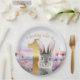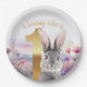 Prato De Papel Cinza Coelho Primeiro Aniversário com Flores Selva