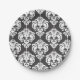 Prato De Papel Cinza e Partido Elegante Chic do Damasco Branco