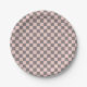 Prato De Papel Cinza e quadro de verificação cor-de-rosa