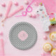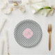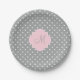 Prato De Papel Cinza monográfica, Bolinhas branca e rosa pastel