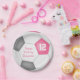 Prato De Papel cinza rosa festa de aniversário branca de futebol