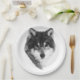 Retrato animal da cinza Wolf Canis lupus em preto e branco. Um prato de papel atraente para qualquer um. Você pode transferir este design para outro produto de sua escolha, basta usar uma opção à direita desta descrição.