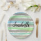 Cinzas de madeira derivada, verde, azul-céu contra praia branca inspirada. As conchas são escritas em preto. Vírus geométrico do verão. Design de arte original © TamiraZDesines
