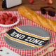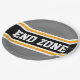 Este esportivo, design atlético, apresenta dentro de texto ousado de END ZONE, uma faixa preta realçada com faixas duplas de corrida branca e amarela contra faixas exteriores de cinza. O texto neste design pode ser personalizado.