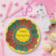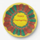 Prato De Papel Circular Dourada Verde Laranja Geométrica de Ação