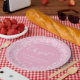 Prato De Papel Círculo de Confetes Rosa Oh Menina Roteiro Elegant
