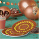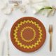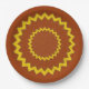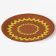 Círculos concêntricos em linha zigue-zague são espaçados do centro à borda do prato. O padrão é em cor amarelo/ouro, fundo em marrom. Mude a aparência personalizando a cor do fundo.