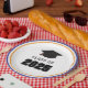 Jogue a festa perfeita para o seu formando. Estas placas têm um boné de formatura azul e laranja com a impressão "Classe 2025".