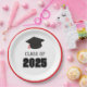 Jogue a festa perfeita para o seu formando. Estas placas têm um boné de formatura vermelho e branco, com a impressão "Classe 2025".