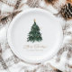 Add a refined touch to your Christmas celebration with this classic holiday plate showcasing a watercolor Christmas tree on a clean white background. Its simple yet elegant design makes it perfect for Christmas dinners, family gatherings, and seasonal entertaining.
