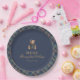 These paper plates feature a refined navy plaid background and charming teddy bear artwork, designed for a classic and timeless girl birthday celebration. Perfect for desserts, snacks, or cake tables.
