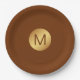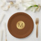 Prato De Papel Clássico Elegante Castanho e Nome Inicial Dourado