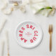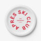 Clube Après Ski, crista de estação de esqui vermelha de inverno, pratos de papel. Personalize com o ano da sua viagem de esqui, nome da estação de esqui e localização. Perfeito para uma viagem de esqui de grupo ou para uma festa de solteira ou despedida de solteiro com tema après ski. Projetado para combinar com nossa Coleção Après Ski Club.