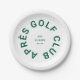 Clube de Golfe Après, crista do clube social de golfe de floresta verde, pratos de papel. Personalize com o ano do seu encontro de golfe, nome do clube e local. Perfeito para uma viagem de golfe de grupo ou para uma festa de solteiro ou despedida de solteira com tema de golfe após o jogo. Projetado para combinar com nossa Coleção Clube de Golfe Après.