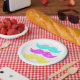 Prato De Papel CMY Mustaches (estilo letterpress)