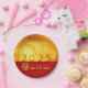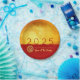 Design moderno com papel texturizado de ouro (imagem impressa) com desejos verticais de ouro Chinês + grande 2025 em vermelho + pequeno papel Cobra com FELIZ ANO NOVO de textos amarelos e Ano do Cobra em um fundo vermelho. Design em placa de papel redonda. Você pode mudar facilmente o ano clicando no botão personalizar. Cartão de saudação, cartão postal de feriado e mais cedo... Perfeito para um eterno e moderno Ano Novo Chinês de Cobra de 2025.